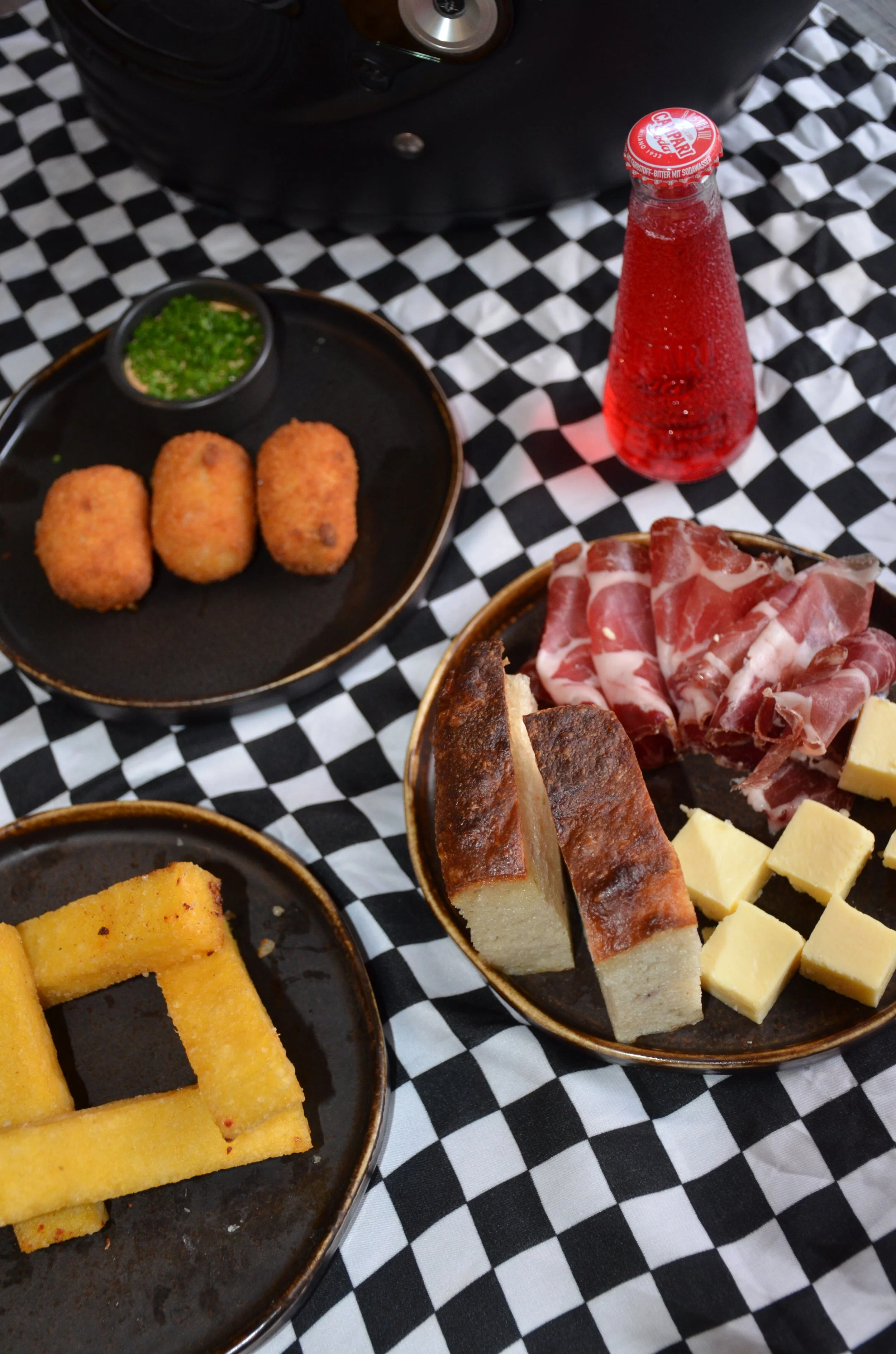 Mini charcuterie with your choice of one meat and one cheese, accompanied by focaccia - $22